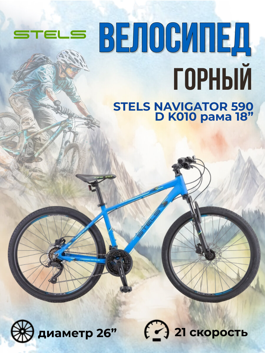 Велосипед Stels Navigator 590 D K010 синий/Ссалатовый (LU094326) рама 18" информация: