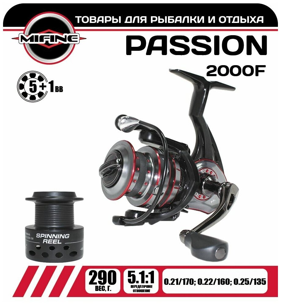 Катушка рыболовная MIFINE PASSION 2000F , для рыбалки, для спиннинга, фидерная, шпуля металл информация: