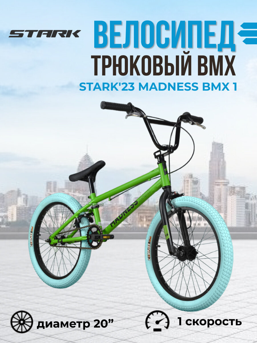 Велосипед Stark Madness BMX 1 (2023) (Велосипед Stark'23 Madness BMX 1 зеленый/черный/голубой, HQ-0012538) 18 604 ₽