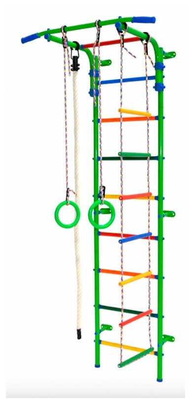 | Комплектация | Шведская стенка, канат, гимнастические кольца, верёвочная лестница, турник |
