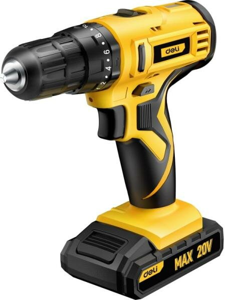 10 цен на Дрель-шуруповерт аккумуляторная ударная Deli DL-CZ20-E1D2 (1АКБ+ЗУ, 20В, 2А*ч, 29Нм, картон)
