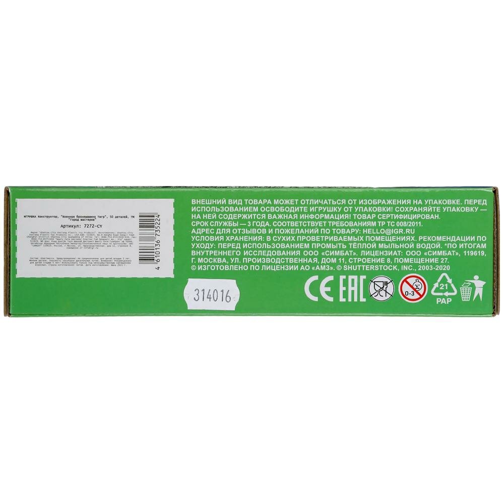 Игрушки Город мастеров ВПК конструктор военная бронемашина тигр, 50 дет. (легко собрать) Город мастеров информация: