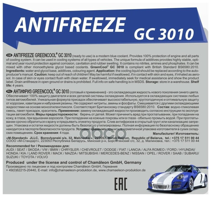 Антифриз Greencool Gc3010 G11, 5 Кг (Син.) Mercedes-Benz Glk-Class (X204) 220 Cdi 4-Matic (204.984, 204.997) 12.2008 - 06.201...