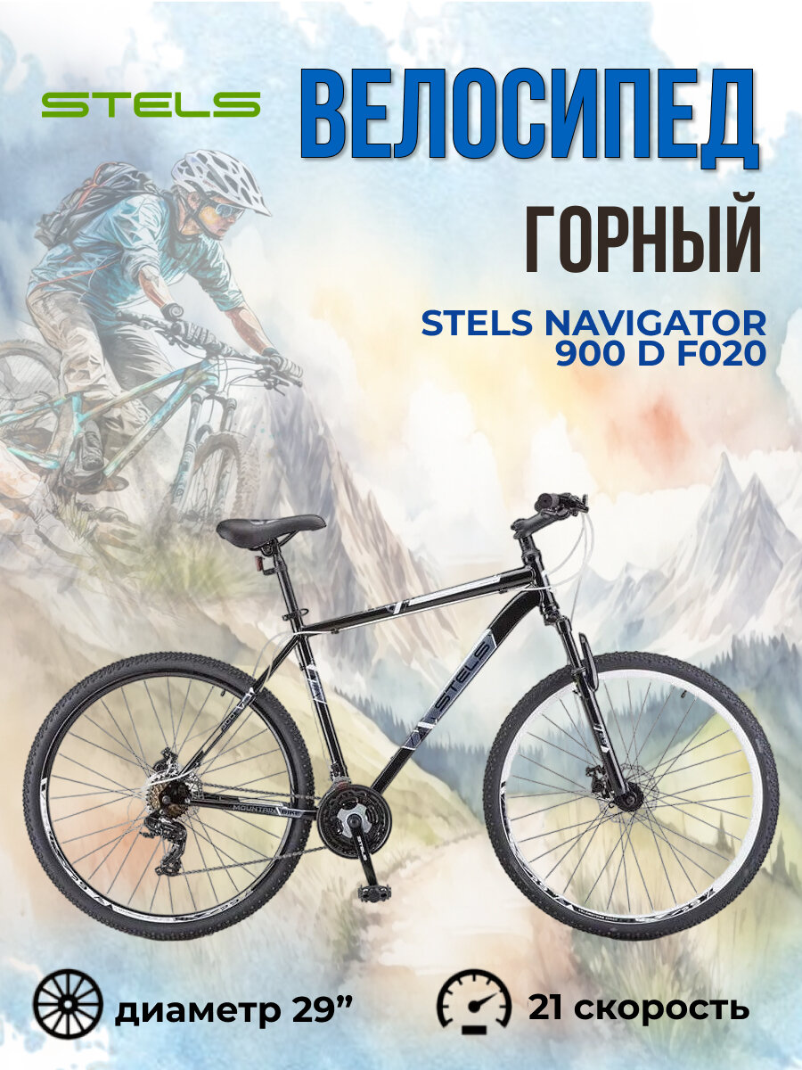Велосипед горный Navigator-900 D 29" F020 ,размер рамы/цвет; 19" Чёрный/белый 2021,STELS (Стелс)