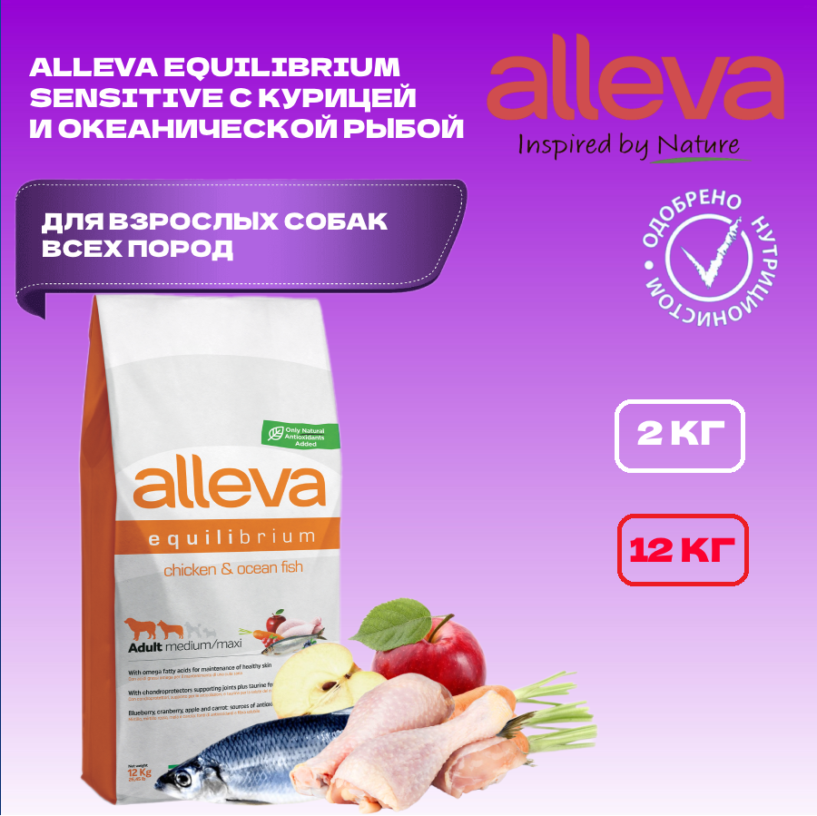 Сухой корм для собак Alleva курица, океаническая рыба 12 кг информация: