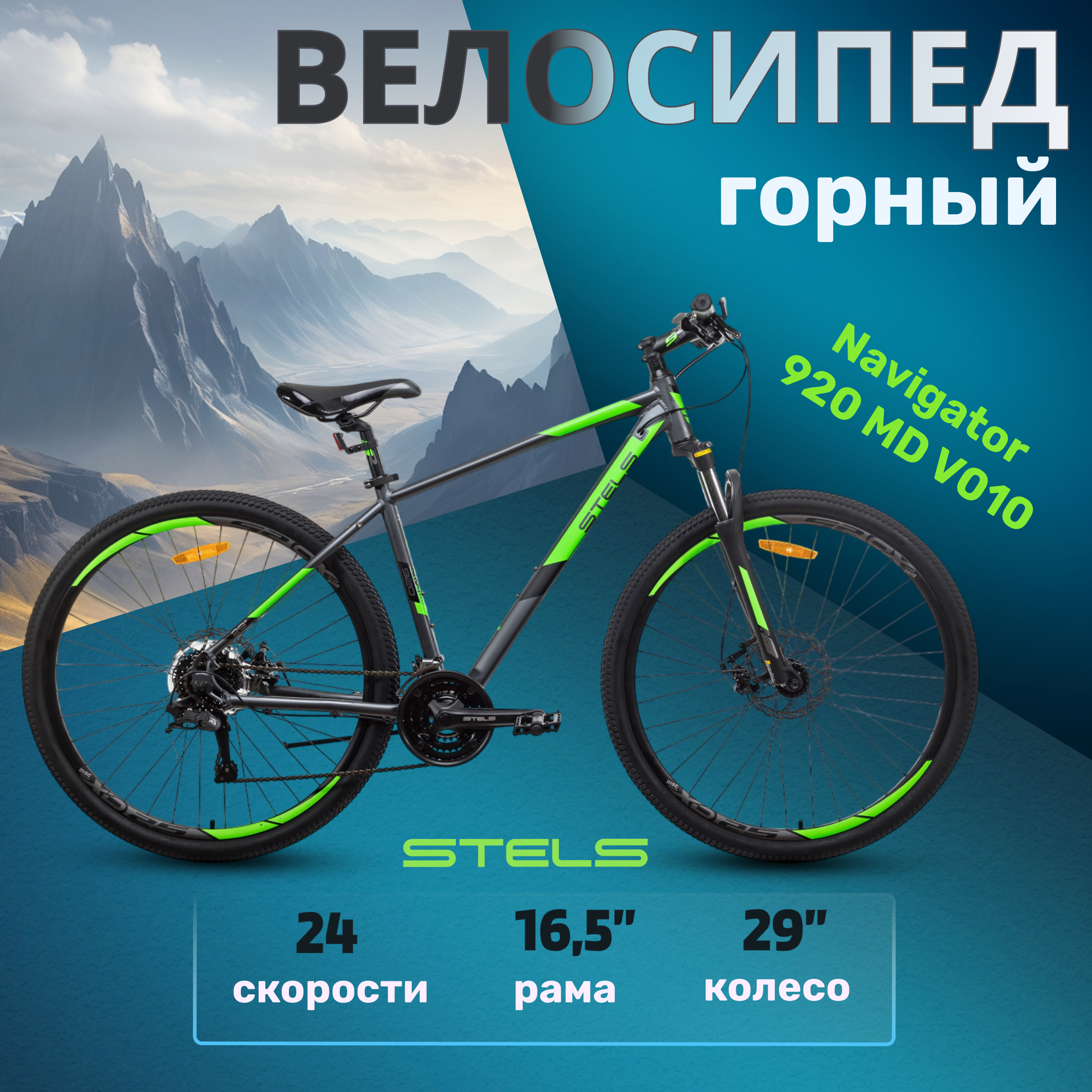 Велосипед Stels Navigator 920 MD V010 Антрацитовый/Зелёный 29 (LU094357), 16,5' информация: