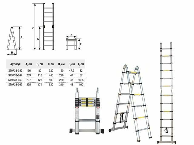 10 цен на Лестница телескопическая 2-х секц. алюм. 295/620см, 2х10 ступ. 22,5кг STARTUL (ST9733-062) (имеет усиленный механизм фиксации ступеней)