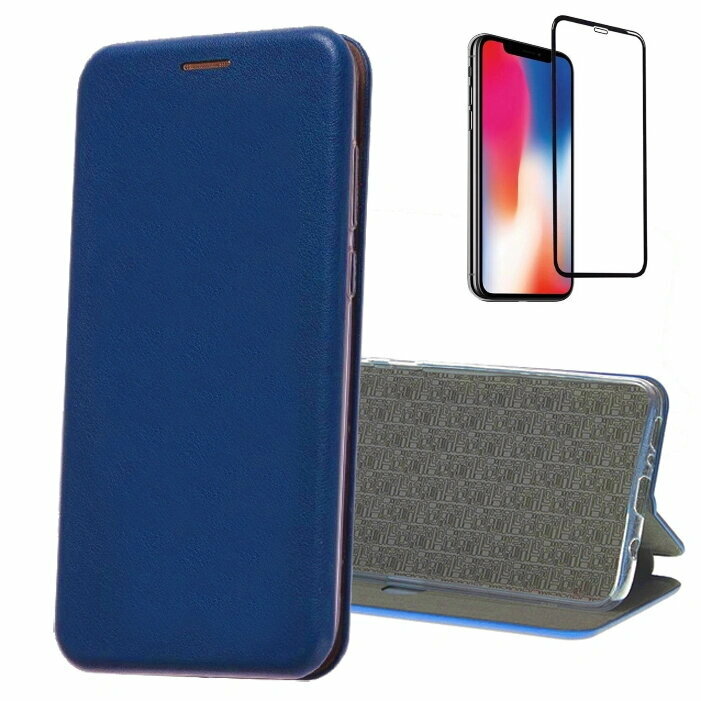 Чехол книжка для iPhone Xr / комплект с защитным стеклом 9D / для Айфон ХР / синий информация: