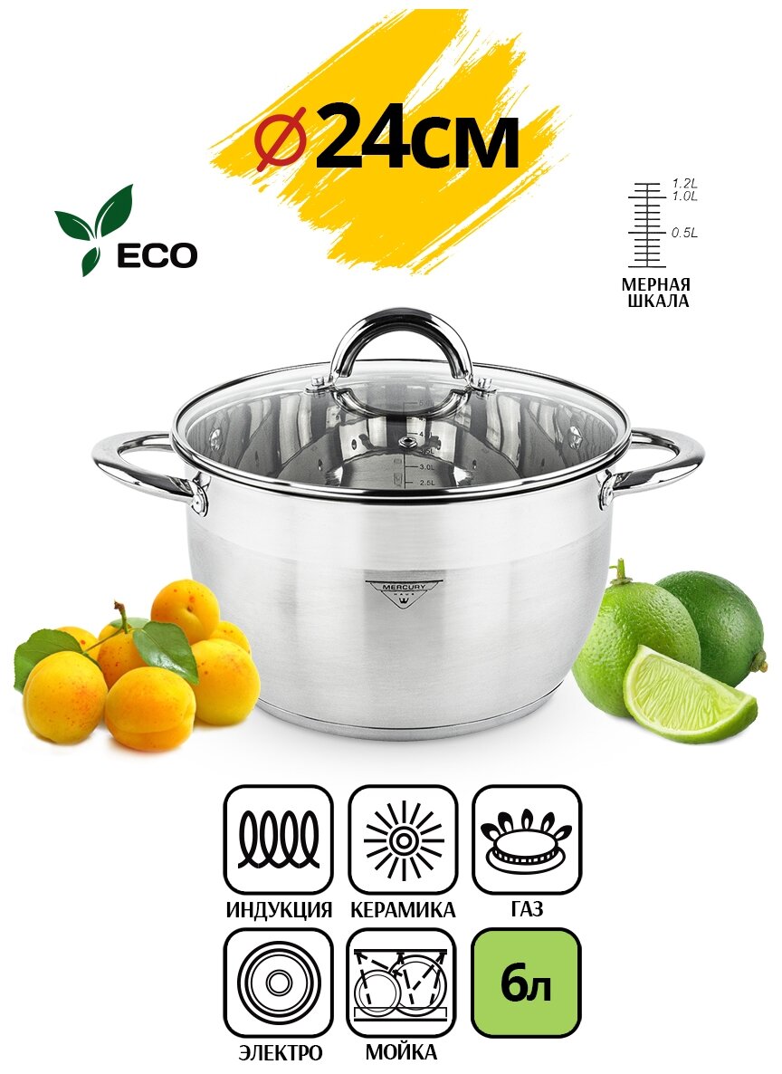 Кастрюля с крышкой "MercuryHaus", Turno (6) 6 л 24*14,5 см информация: