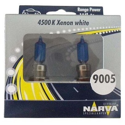 48625RPW NARVA Комплект галогенных ламп 2шт HB3 12V 60W RANGE POWER WHITE (4500K, очень яркий белый свет, эффект ксенона)