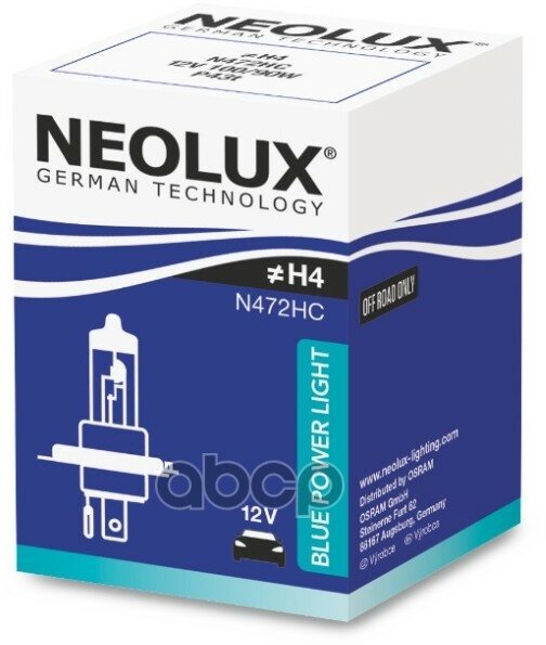 Лампа H4 12V-100/90W (P43t) Blue Power Light (Коробка 1Шт.) Neolux Арт. N472hc Neolux арт. N472HC