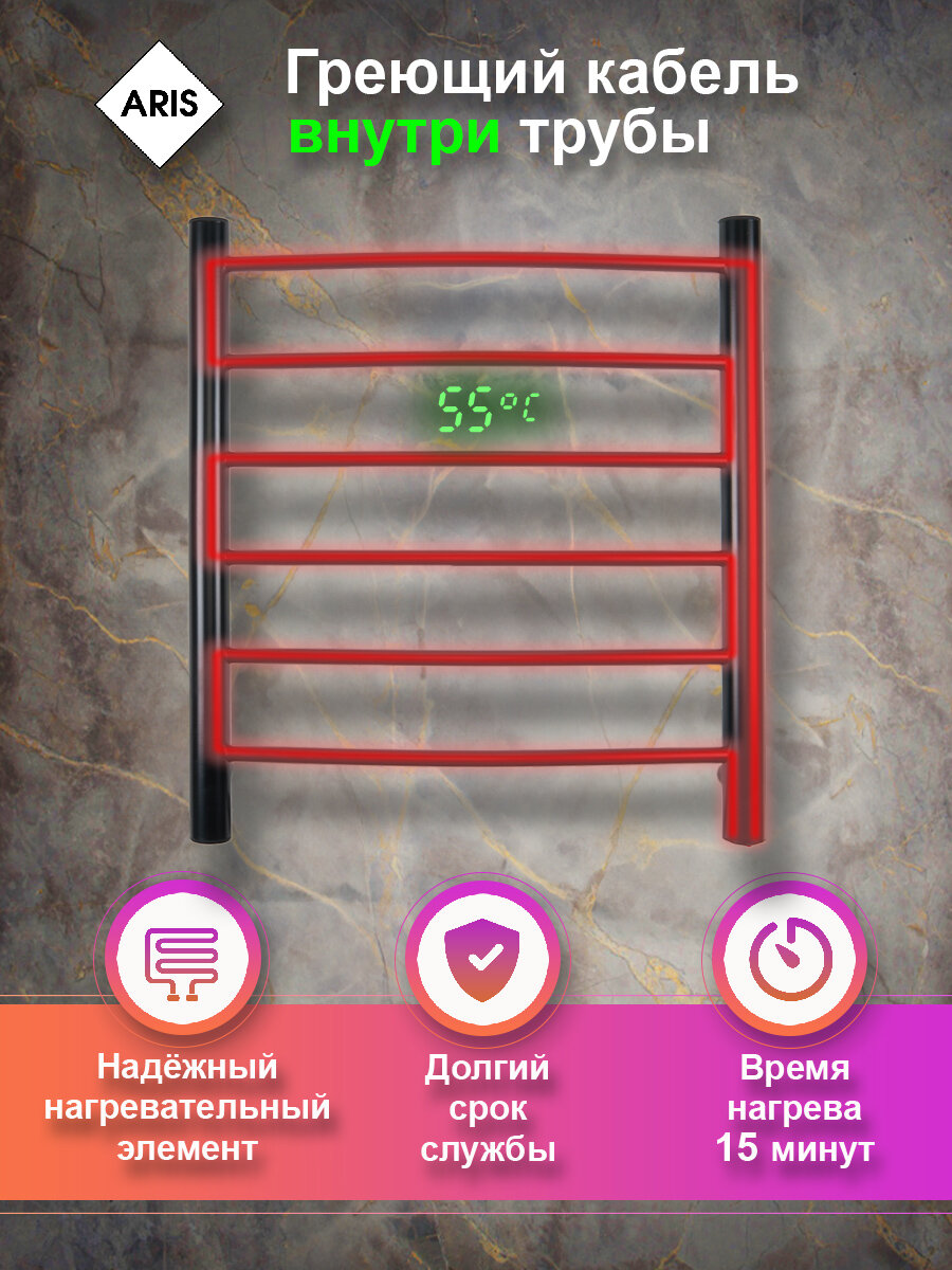 10 цен на М-обр. черный 500х500 Полотенцесушитель электро Змеевик Левое подключение