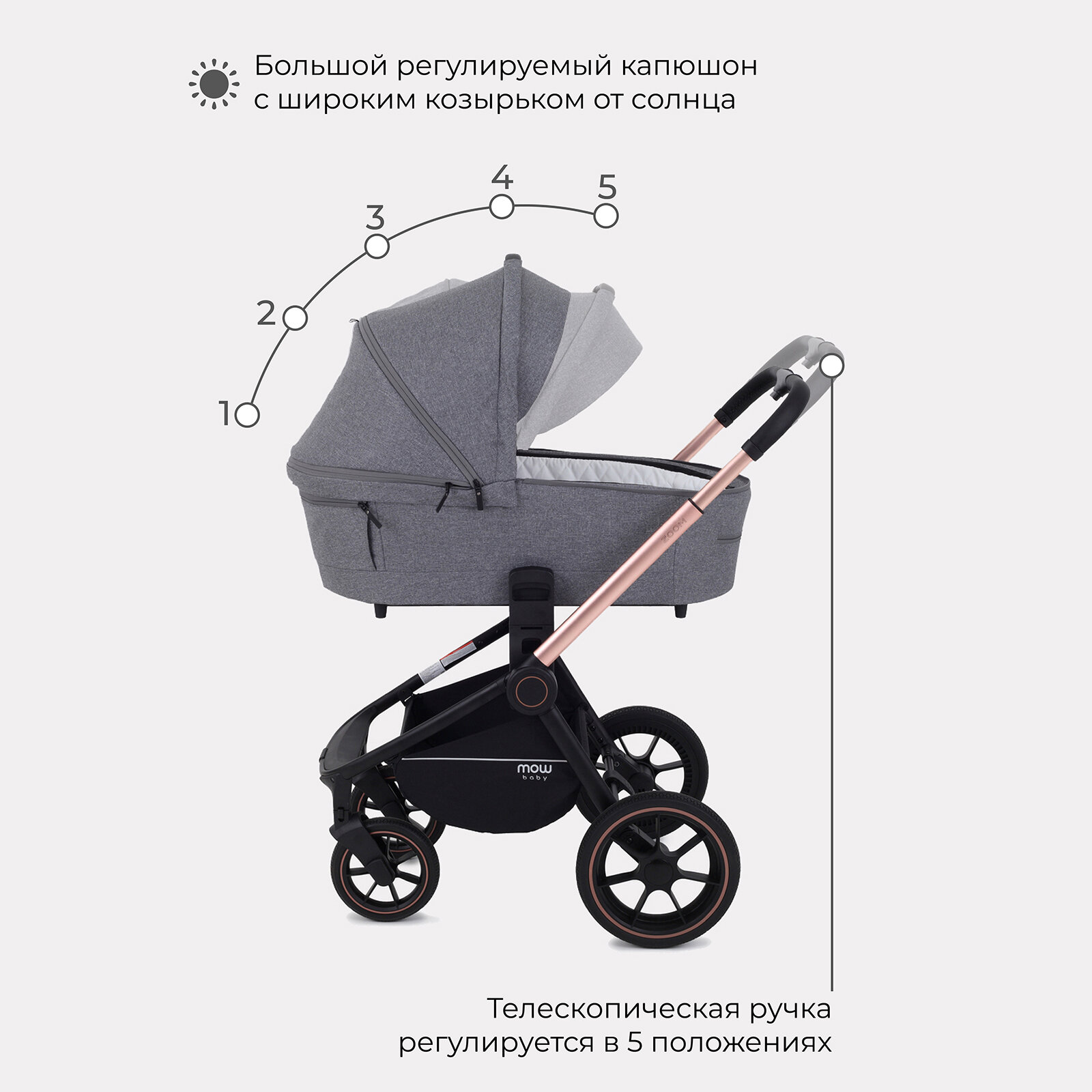 Коляска детская MOWBaby "ZOOM"PU (3в1) RA087 Gold Grey информация: