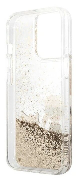 Lagerfeld для iPhone 13 Pro чехол Liquid glitter Karl & Choupette Hard Gold информация: