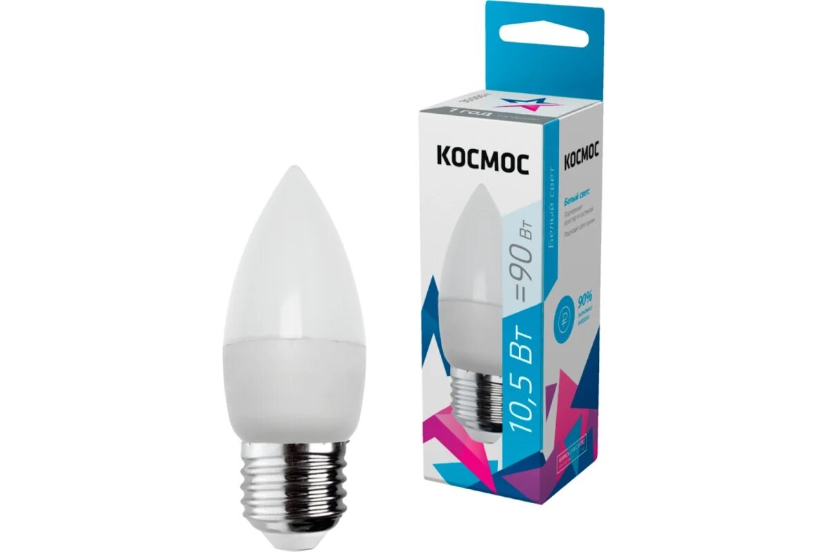 Светодиодная лампа Космос, свеча, 8.5 Вт, E27, 3000 K, LED8.5wCNE2730, теплый белый