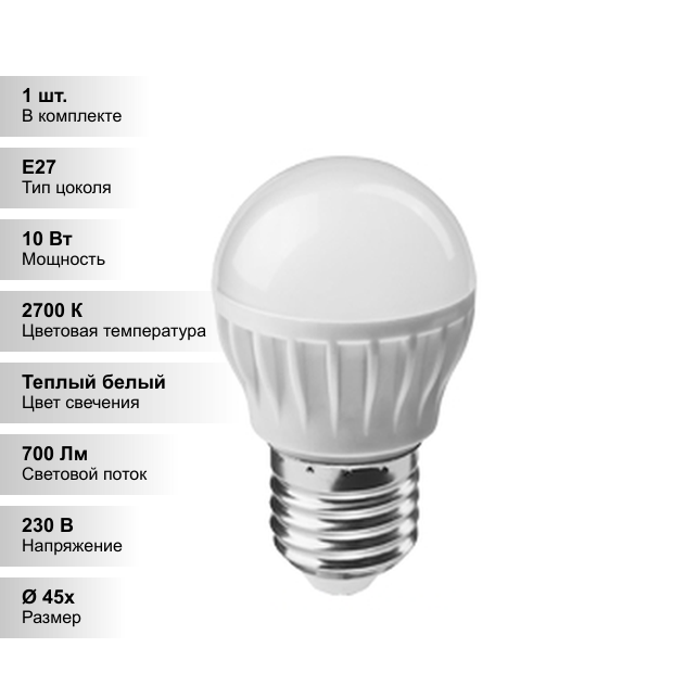 Светодиодная лампа OnLight 61 968 OLL-G45-10-230-2.7K-E27 E27 10W 2700K информация: