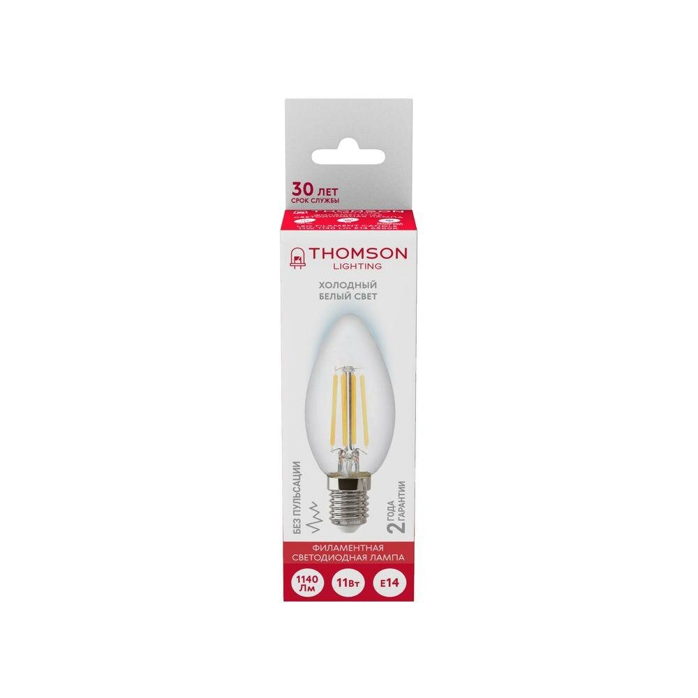 10 цен на Thomson Лампа светодиодная филаментная Thomson E14 11W 6500K свеча прозрачная TH-B2371