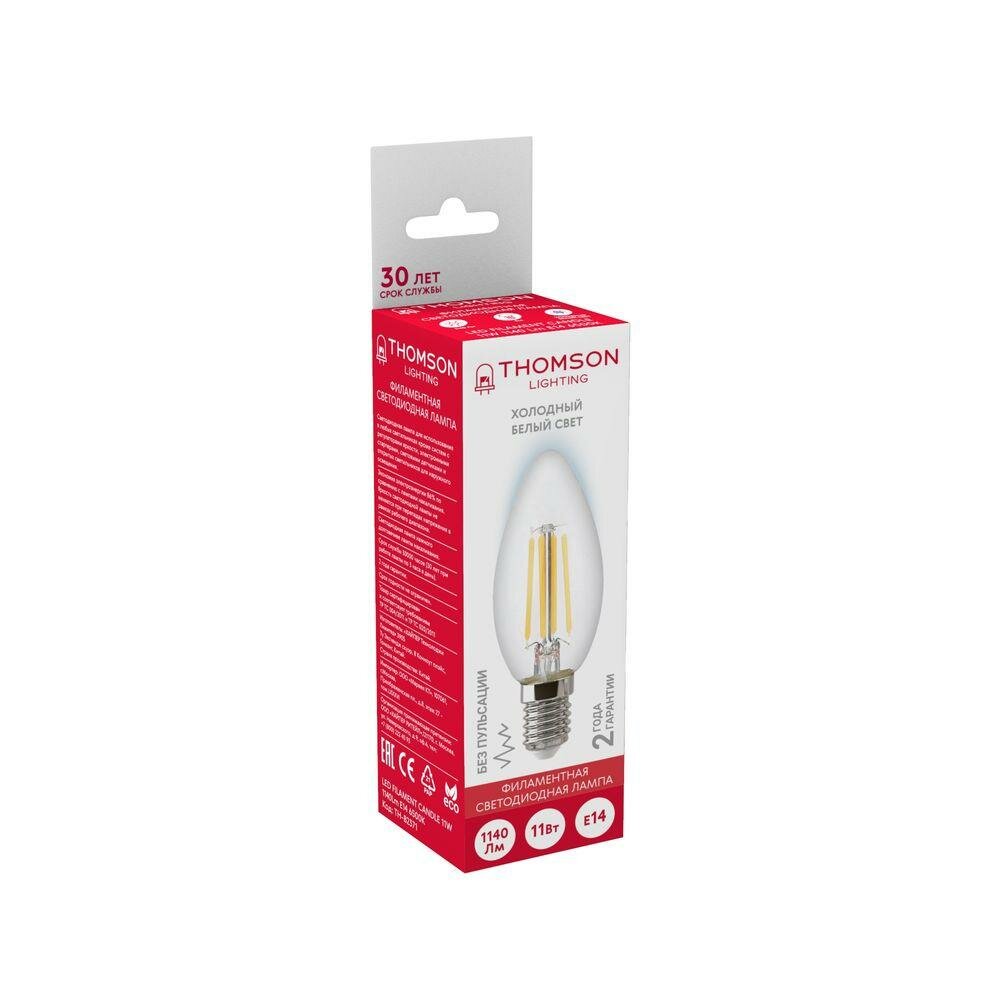 Отзывы на Thomson Лампа светодиодная филаментная Thomson E14 11W 6500K свеча прозрачная TH-B2371