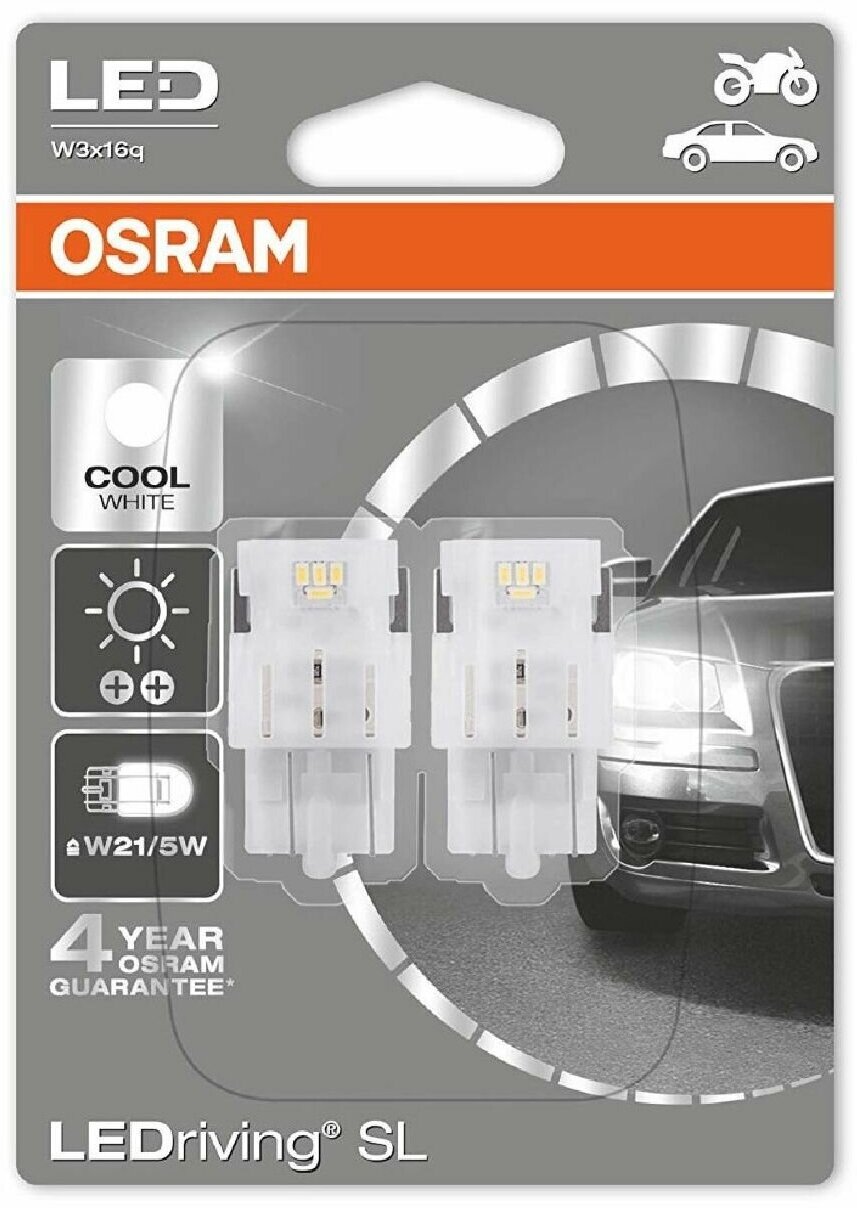 Лампа автомобильная Osram Cool White LEDriving SL W21/5W 12V-LED (W3x16q) 6000K 1.9W, 3 пок. бл.2шт, 7515DWP-02B