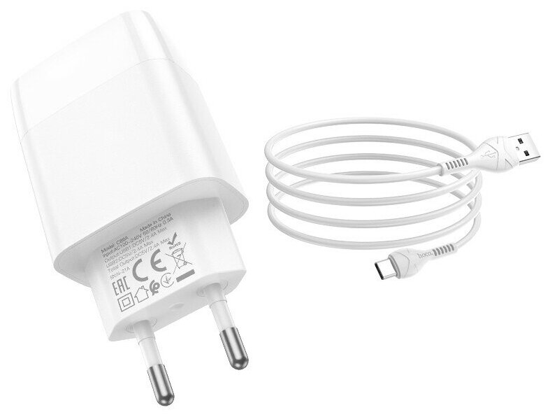 Сетевое зарядное устройство Hoco N7, 2xUSB, 2.1 А, белое