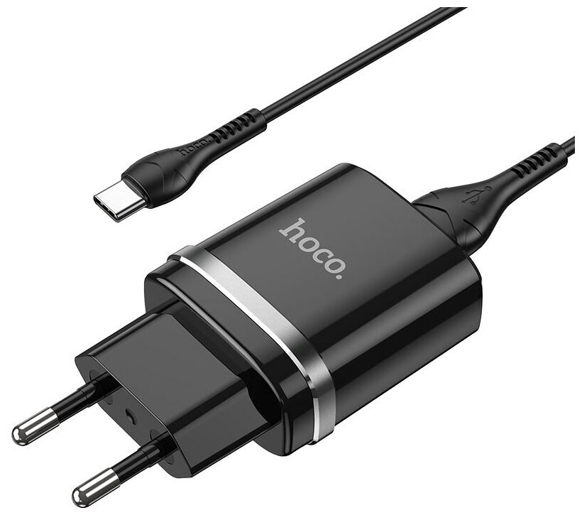 Блок питания сетевой 1 USB HOCO, N1, Ardent, 2.4A, пластик, кабель Type-C, цвет: чёрный информация: