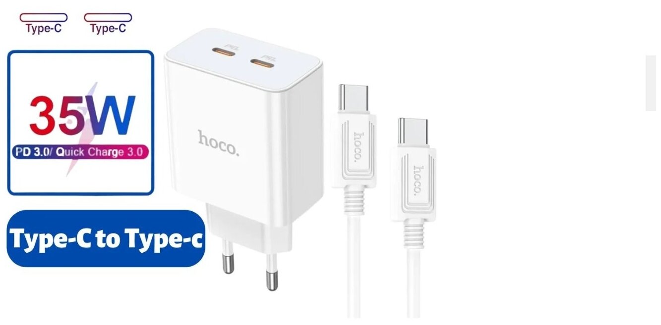 10 цен на Зарядное устройство Hoco C108A PD35W EU (QC3.0/PD/PPS) Fast Charger Set (Type-C + Type-C) + Кабель Type-C to Type-C, Белый