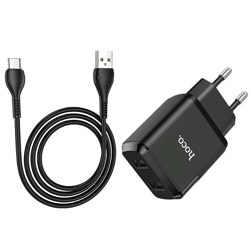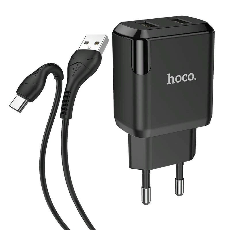 10 цен на Адаптер питания Hoco N7 Speedy dual port charger с кабелем Type-C (2USB: 5V max 2.1A) Черный