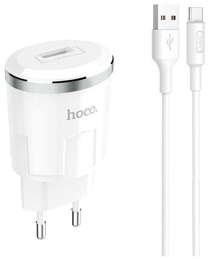 Блок питания сетевой 1 USB HOCO, C37A, Thunder, 2400mAh, пластик, кабель Type-C, цвет белый (1/21/126) информация: