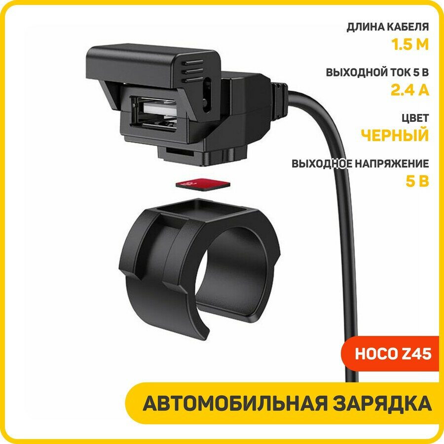 Автомобильное зарядное устройство (АЗУ) Hoco Z45 (с креплением на мотоцикл) 2.4 A, черный информация: