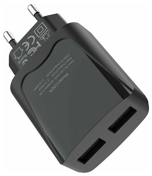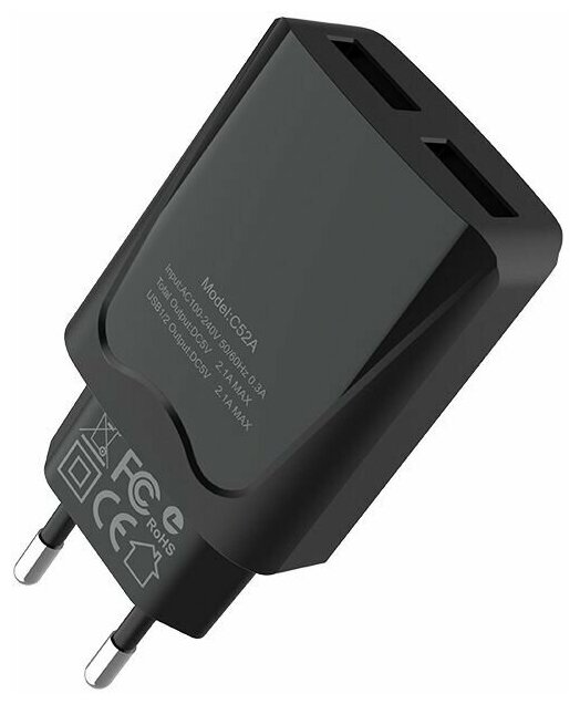 Сетевое зарядное устройство HOCO C52A Speed charger 2xUSB, 2.1А (черный) информация: