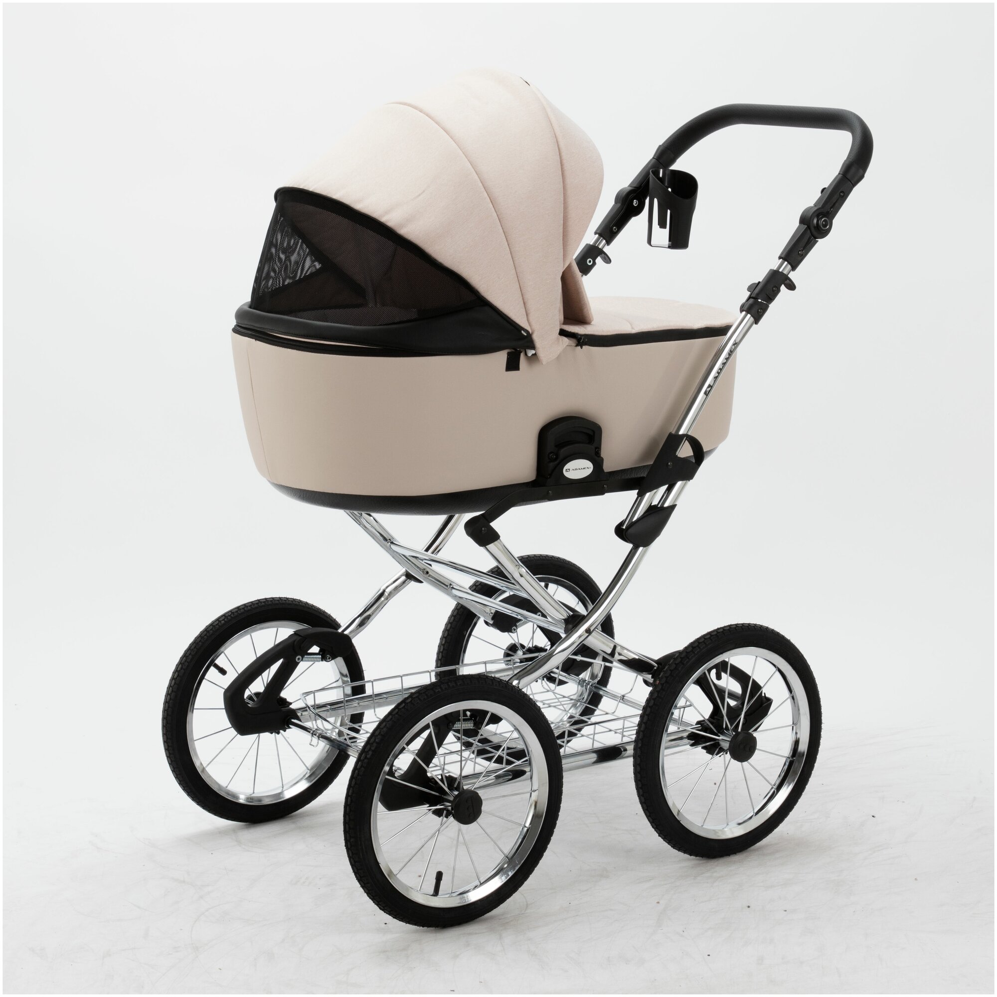 Детская универсальная коляска Adamex LANTI Deluxe 2 в 1 SD-110 (светло-бежевая экокожа, черная экокожа)