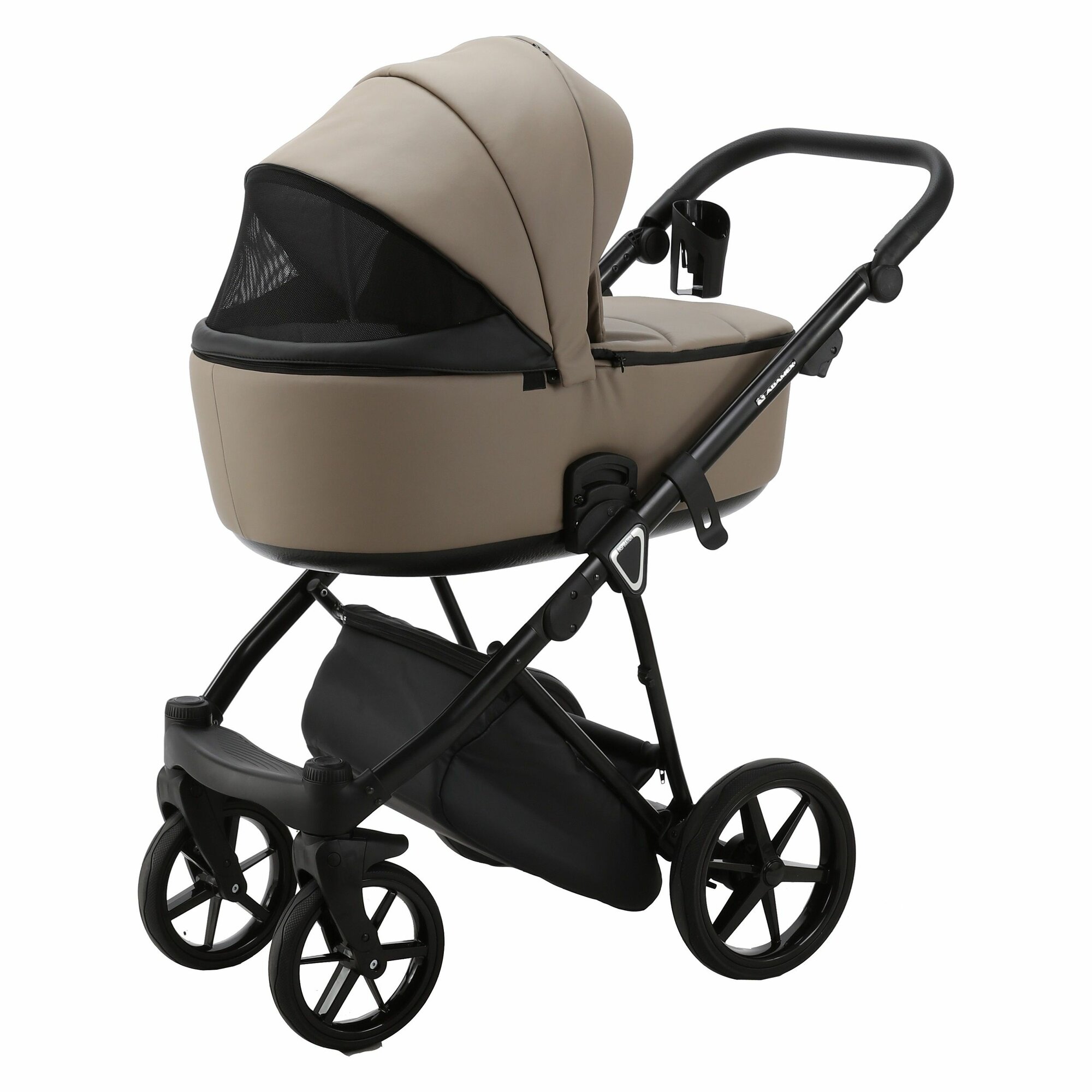 Детская универсальная коляска Adamex LANTI Deluxe 2 в 1 SD-110 (светло-бежевая экокожа, черная экокожа)