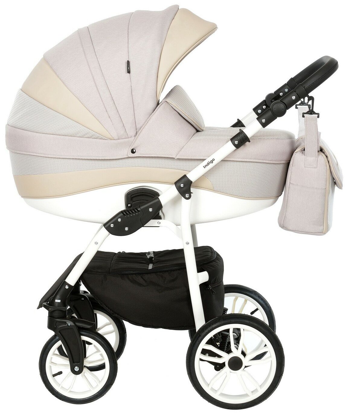 Коляска-люлька универсальная 2 в 1 Indigo Indigo прогулочная всесезонная с большими колесами, (01) бежевый
