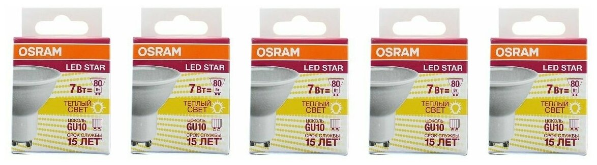 10 цен на Лампа светодиодная OSRAM LED Star PAR16 7Вт 3000К GU10 (5 шт)