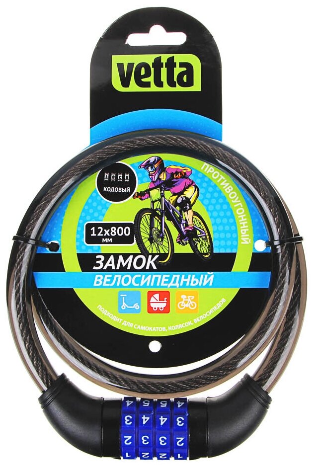 Велосипедный противоугонный кодовый замок VETTA, 12X800мм информация: