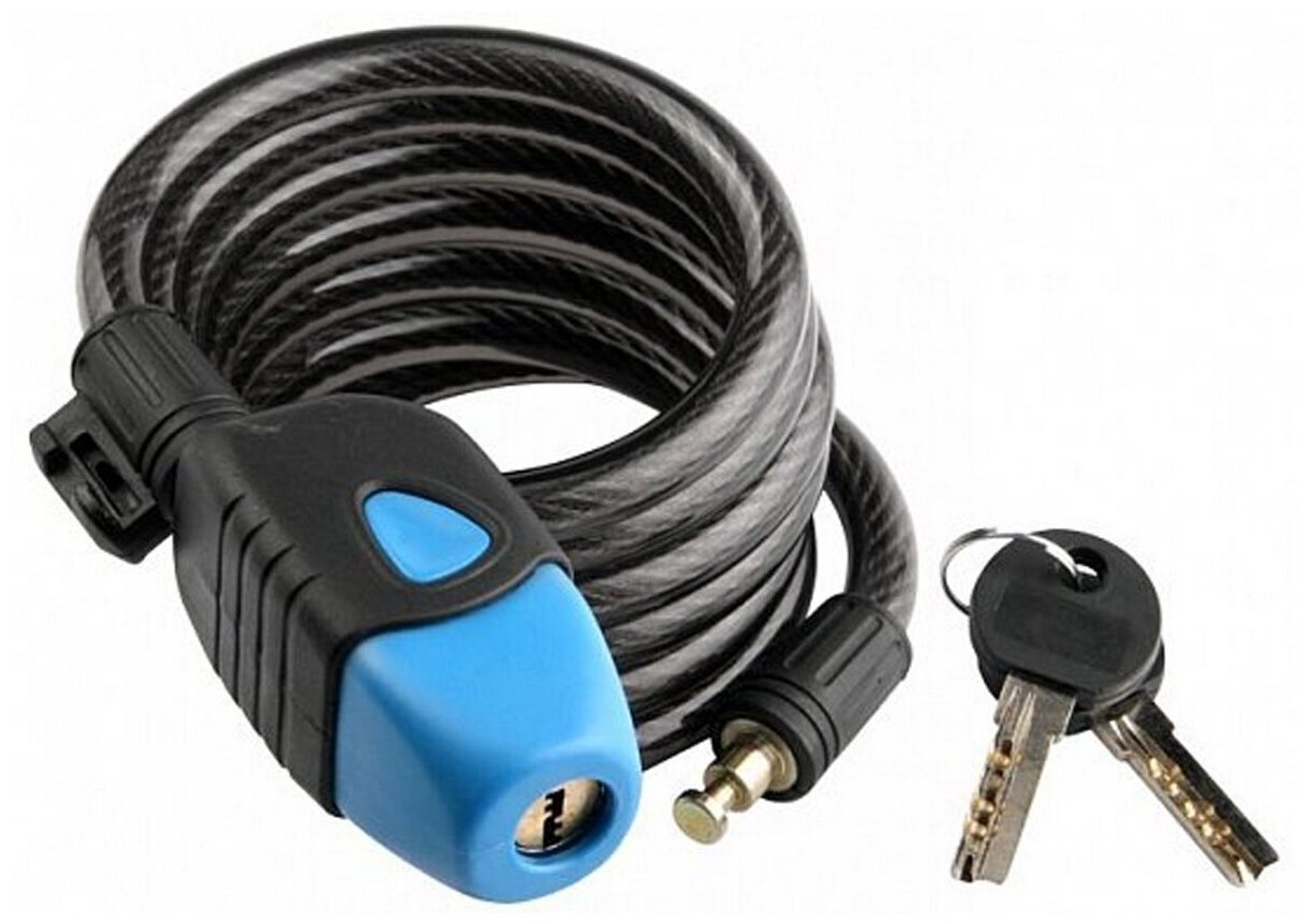 40052 Замок велосипедный тросовый с ключом, замок для коляски, для самоката BASARA B3-1000 MBP, 1000 мм