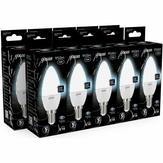 Отзывы на Светодиодная лампа Gauss LED Свеча E14 9.5W 950lm 4100К (упаковка 10 шт.)