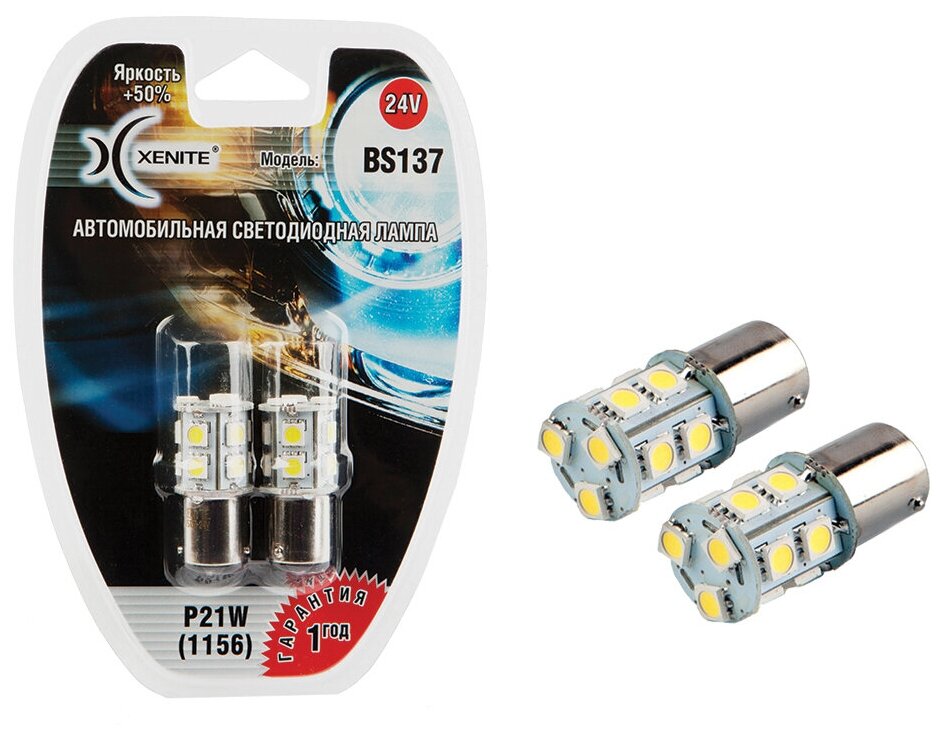 Лампа Светодиодная Сигнальная P21w Ba15s 5000k Bs-137 24v 2w Блистер 2 Шт Xenite арт. 1009397 информация: