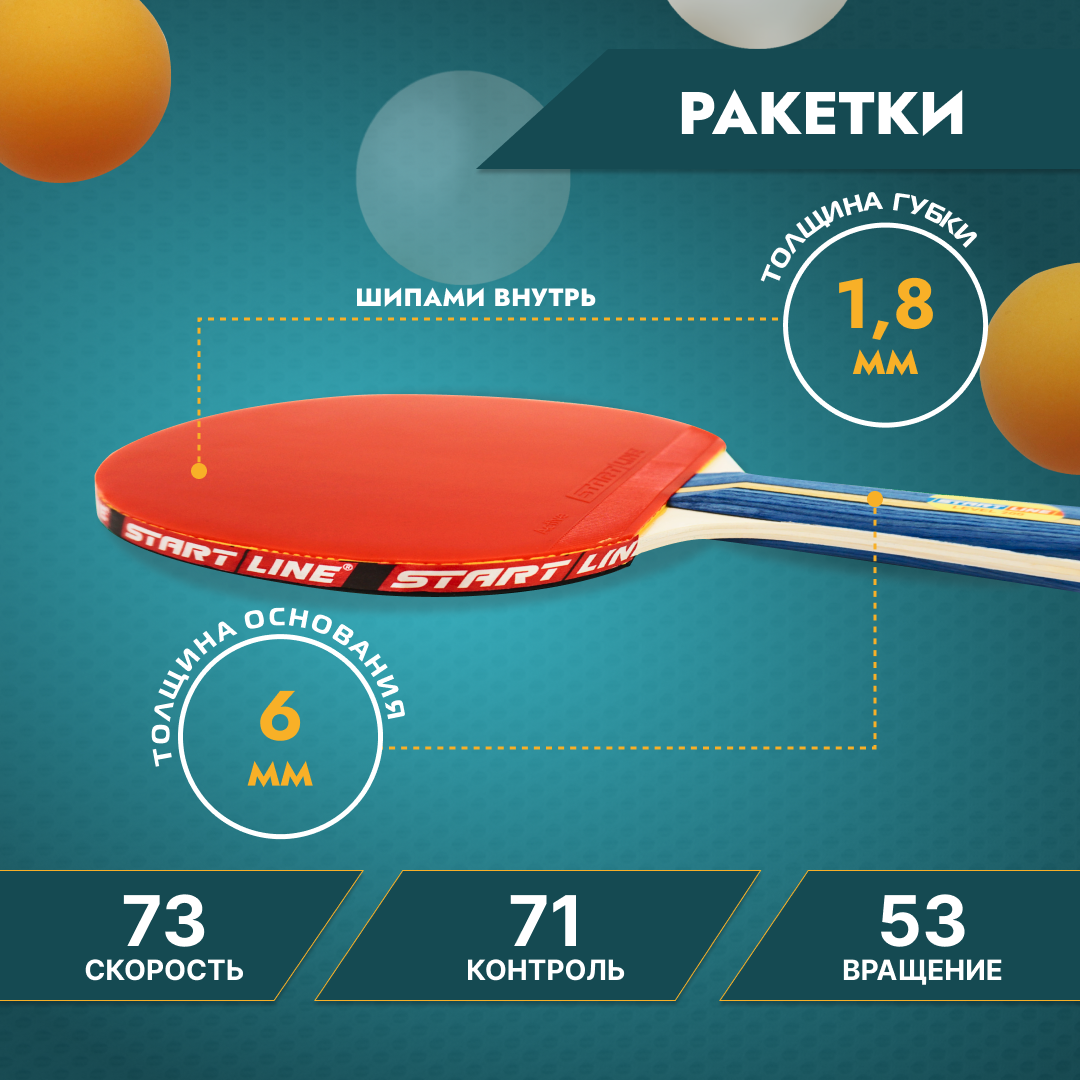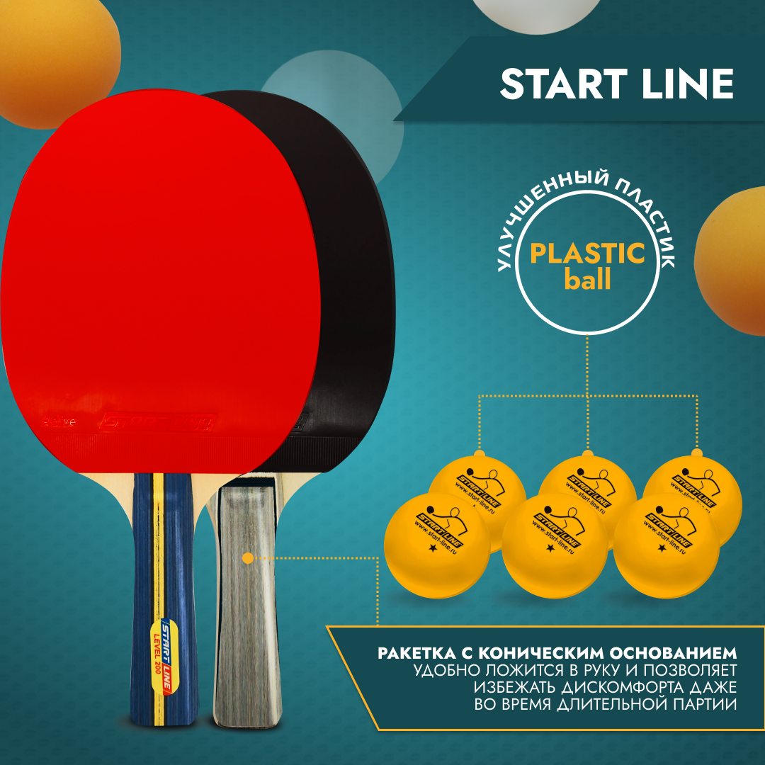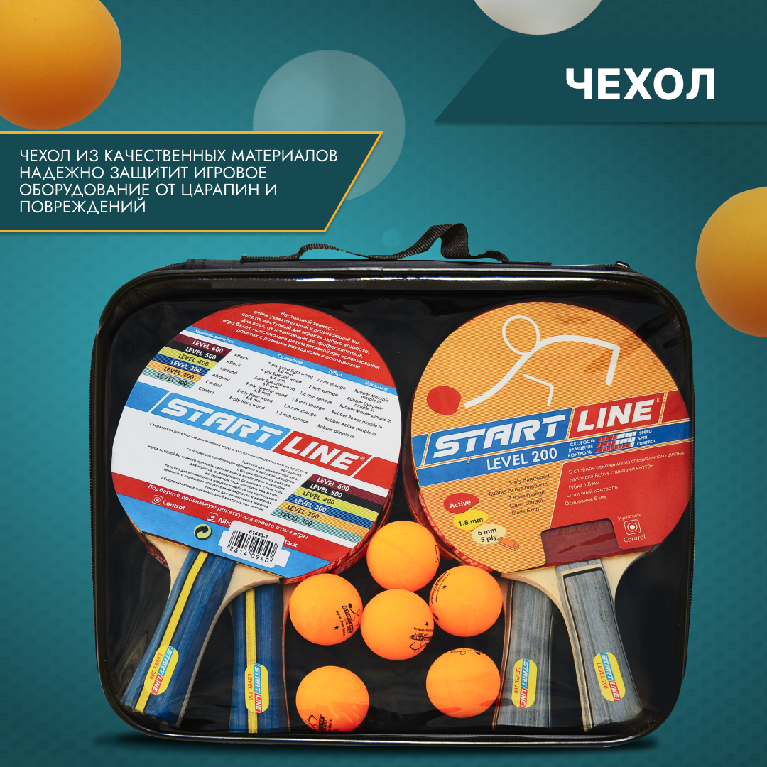 Набор для настольного тенниса START LINE: 4 Ракетки Level 200, 6 Мячей Club Select, упаковано в сумку на молнии с ручкой. информация: