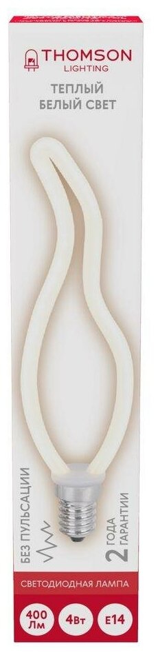 Светодиодная лампа Hiper THOMSON LED FILAMENT DECO TAIL CANDLE 4W 400Lm E14 2700K Frosted информация: