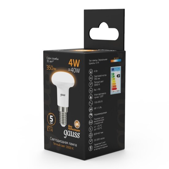 Отзывы на Светодиодная лампа Gauss R39 E14 4W 2700K Frost зеркальная ( упаковка 10шт.)
