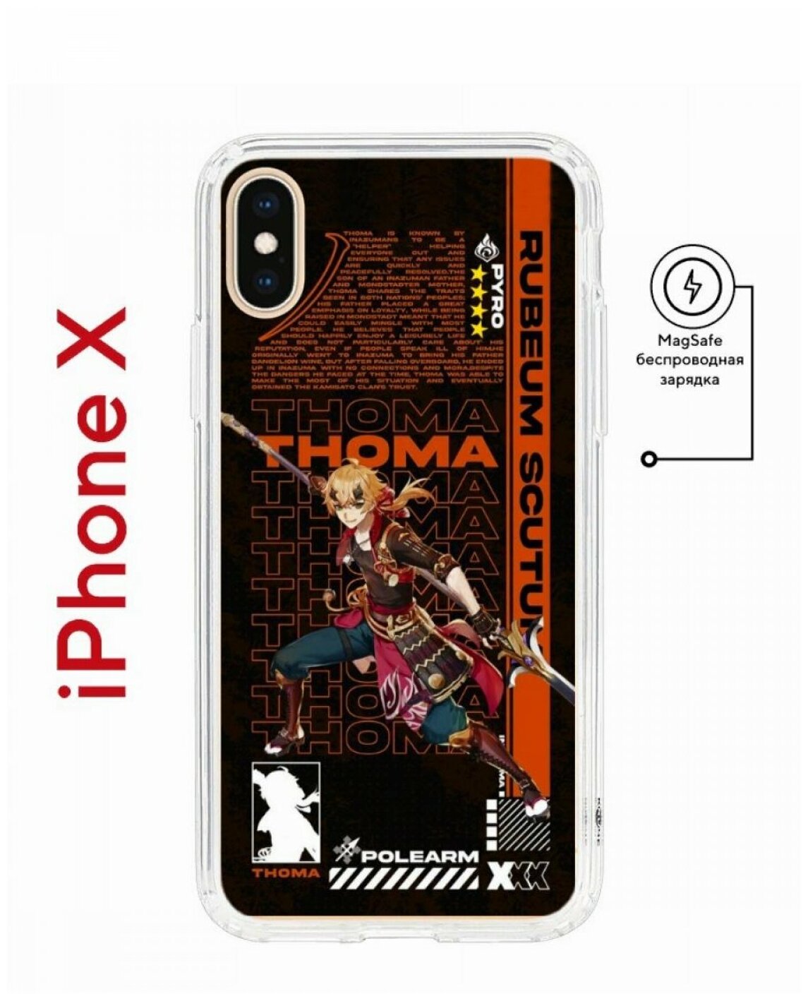 Чехол для iPhone X/XS Kruche Print MagSafe Thoma Genshun,противоударный силиконовый бампер с рисунком,пластиковый кейс МагСейф с защитой камеры информация: