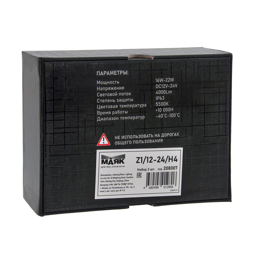 Лампа автомобильная светодиодная маяк Z1/12-24V/H4 H4 12/24V 16/22W 2 шт. информация: