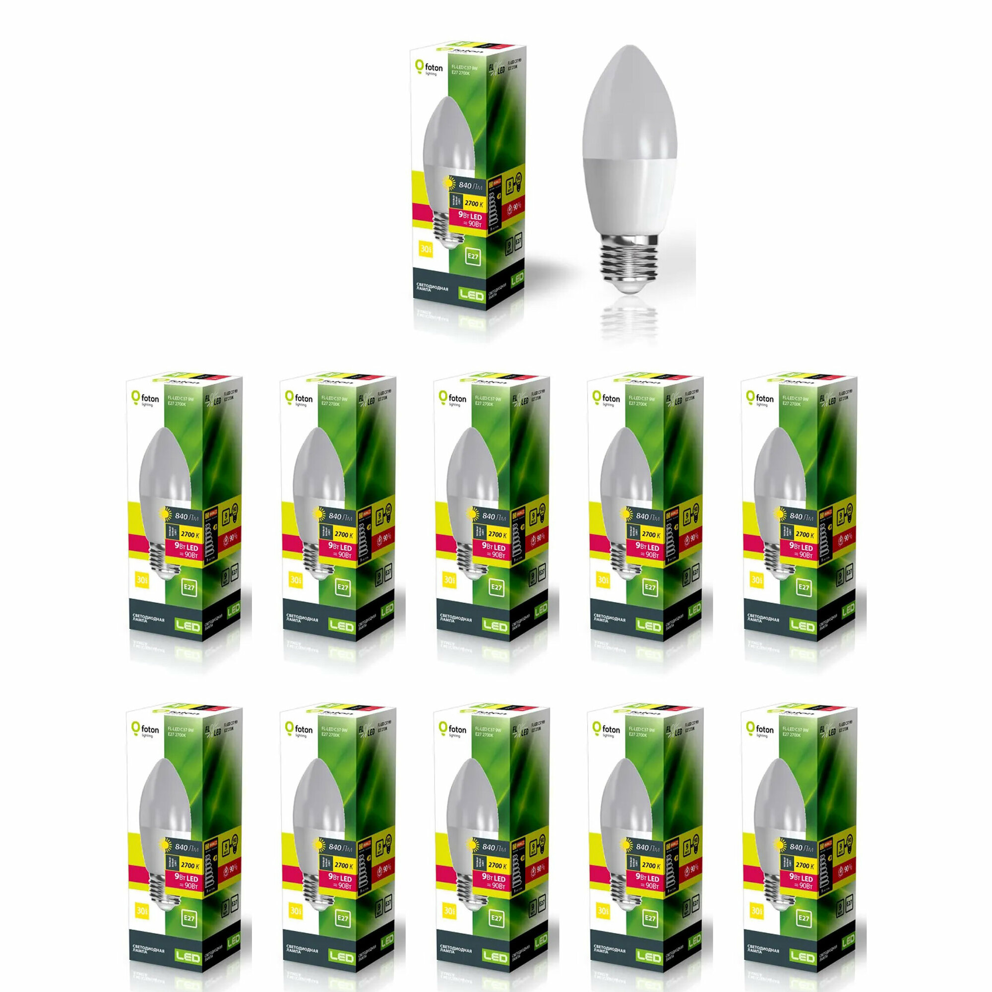 10 цен на Лампочка светодиодная Foton Lighting Свеча B E27 9Вт 220В 840Лм 2700К Теплый белый, упаковка 10шт