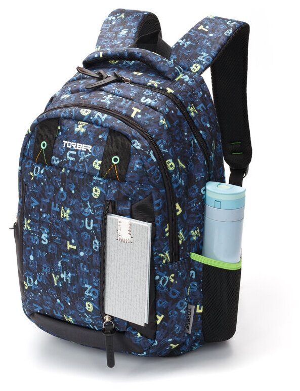 Отзывы на Рюкзак TORBER CLASS X, темно-синий с рисунком "Буквы", полиэстер, 45 x 32 x 16 см