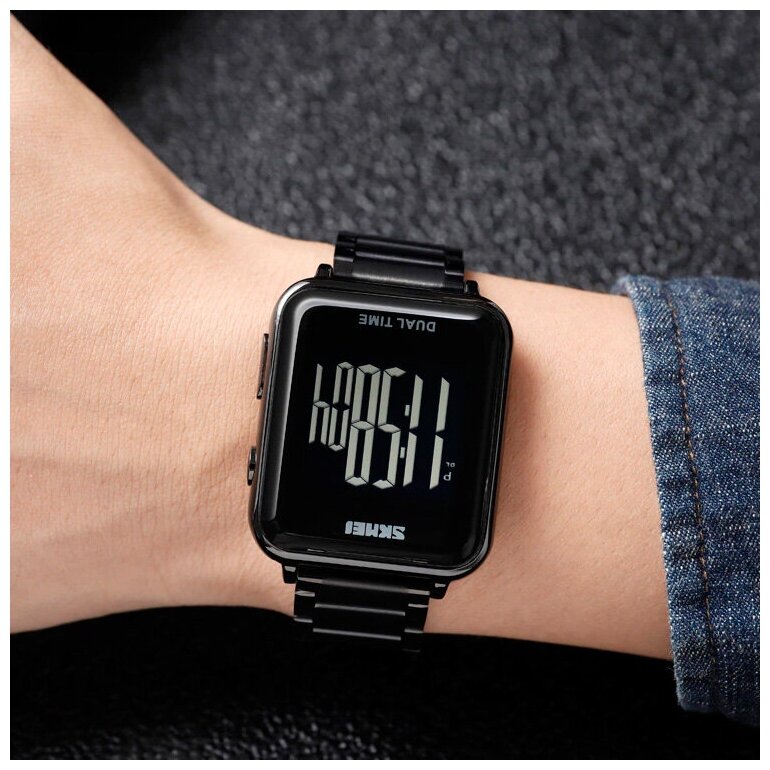 Отзывы на Часы наручные мужские электронные спортивные водонепроницаемые SKMEI 1852 черные прямоугольные с секундомером и будильником