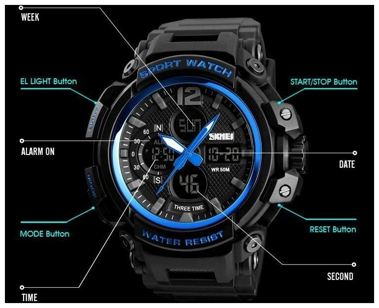 10 цен на Часы Skmei/Скмей 1343 спортивные мужские таймер Черные