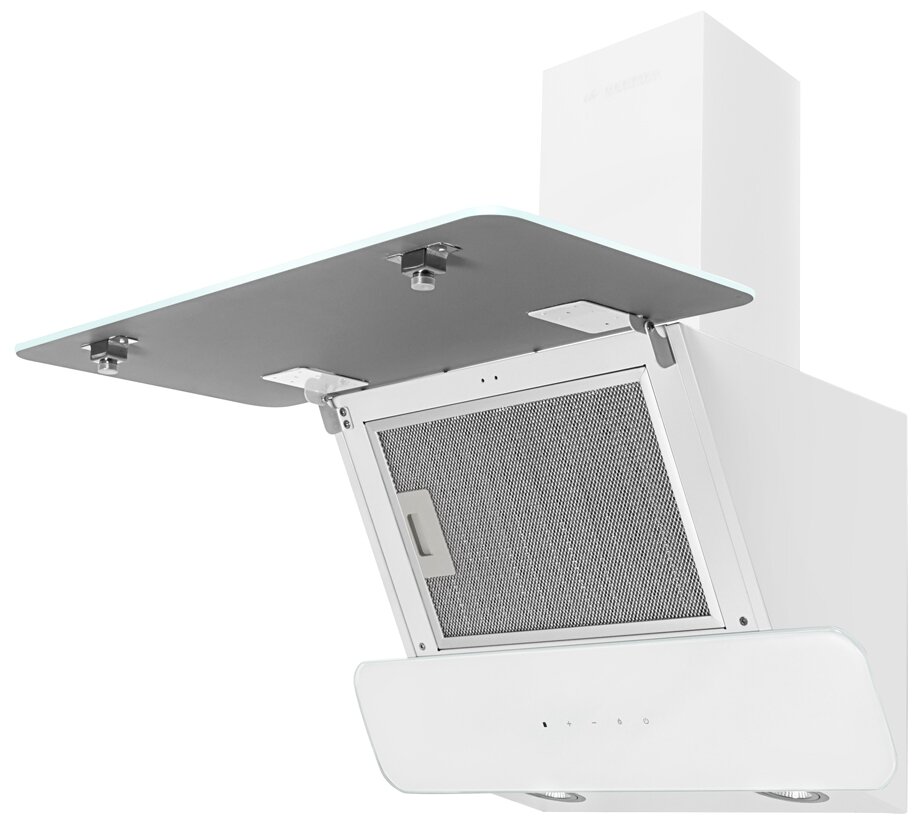 Наклонная кухонная вытяжка LEX MERA 600 WHITE, 60см, отделка: стекло, кнопочное управление, LED лампы, белый.