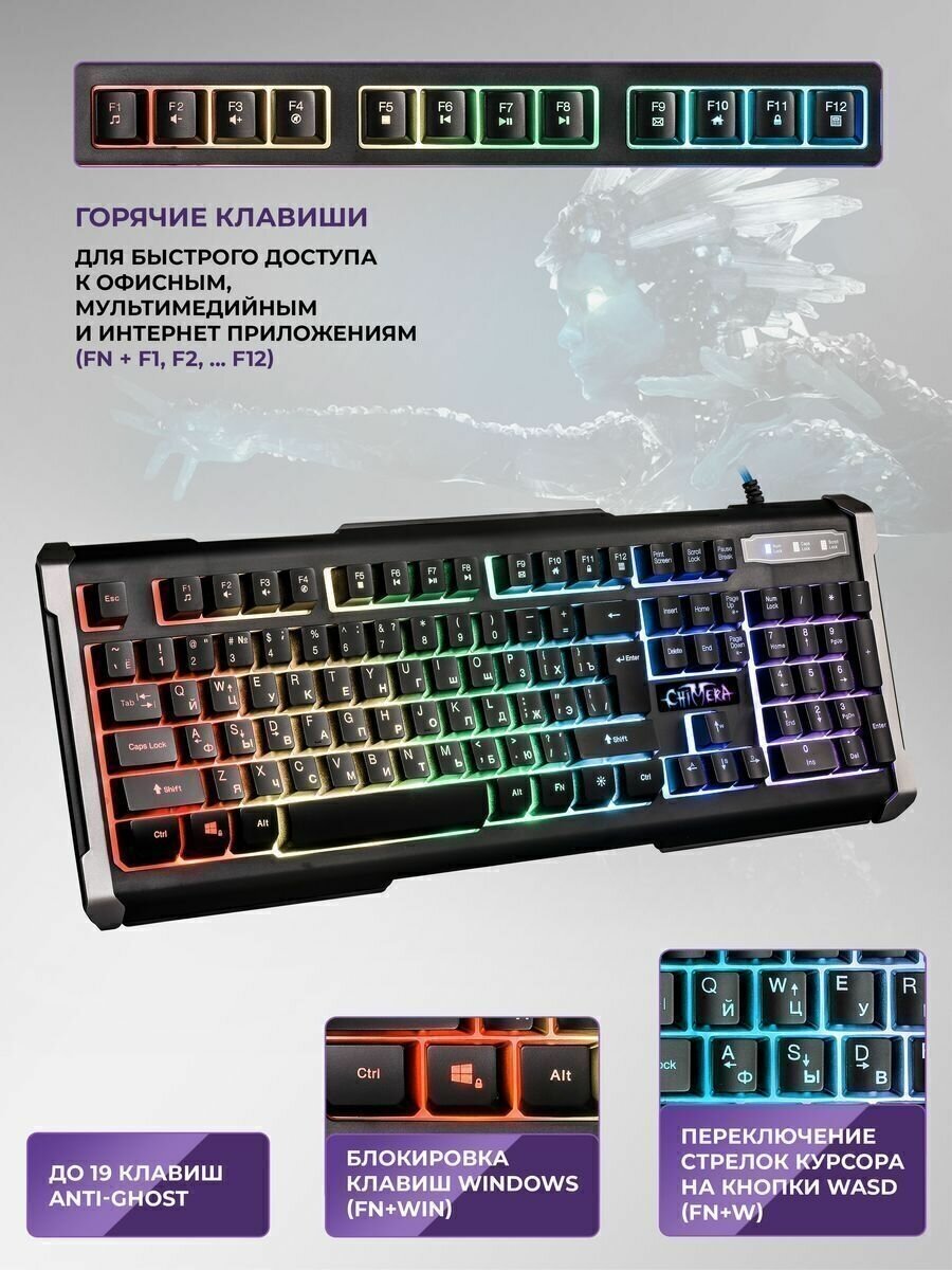 Клавиатура Defender Chimera GK-280DL RU (45280) черный, игровая (RGB подсветка, 9 режимов) информация: