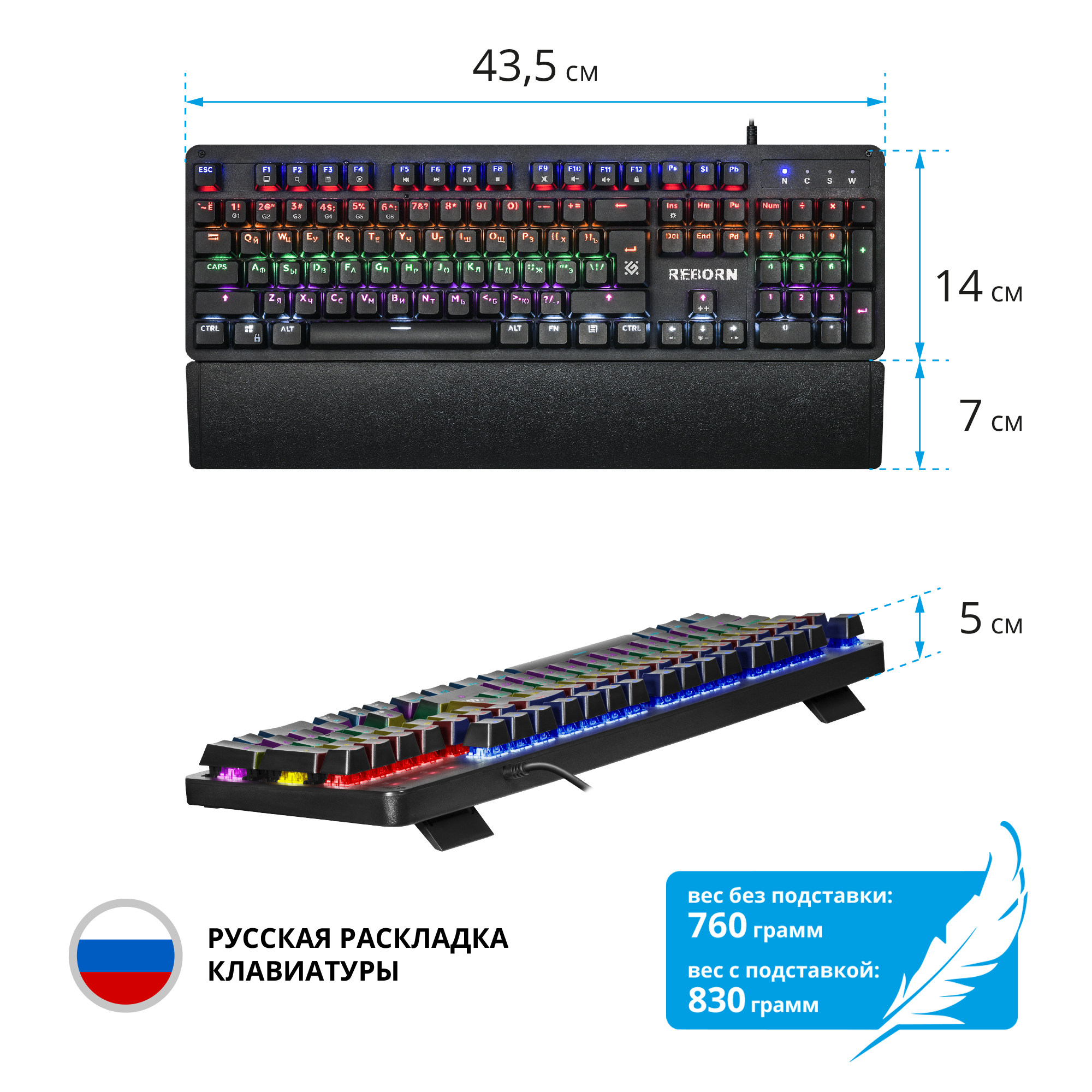 Клавиатура Defender Reborn Gk-165dl RU, радужная подсветка (45165) .